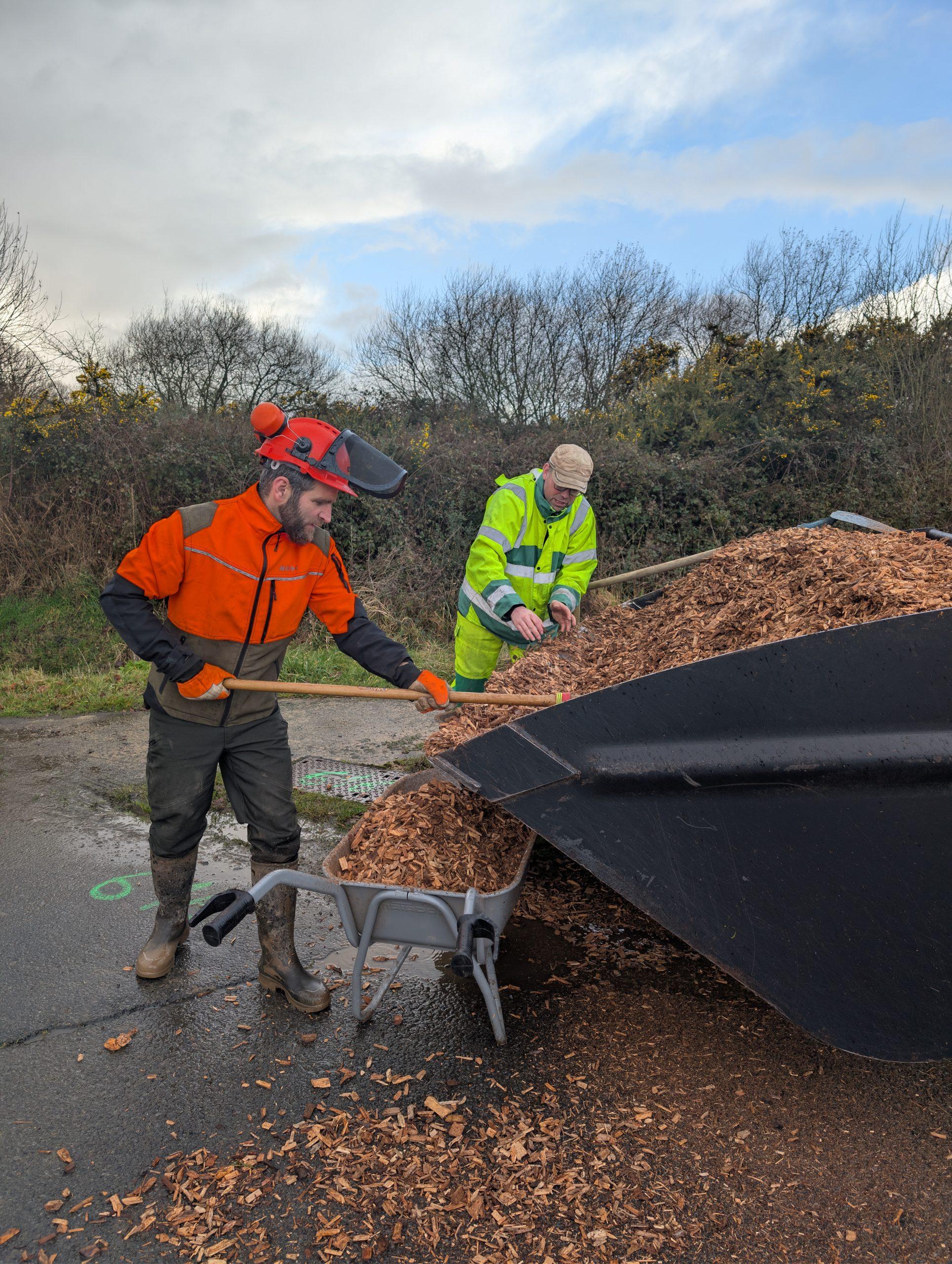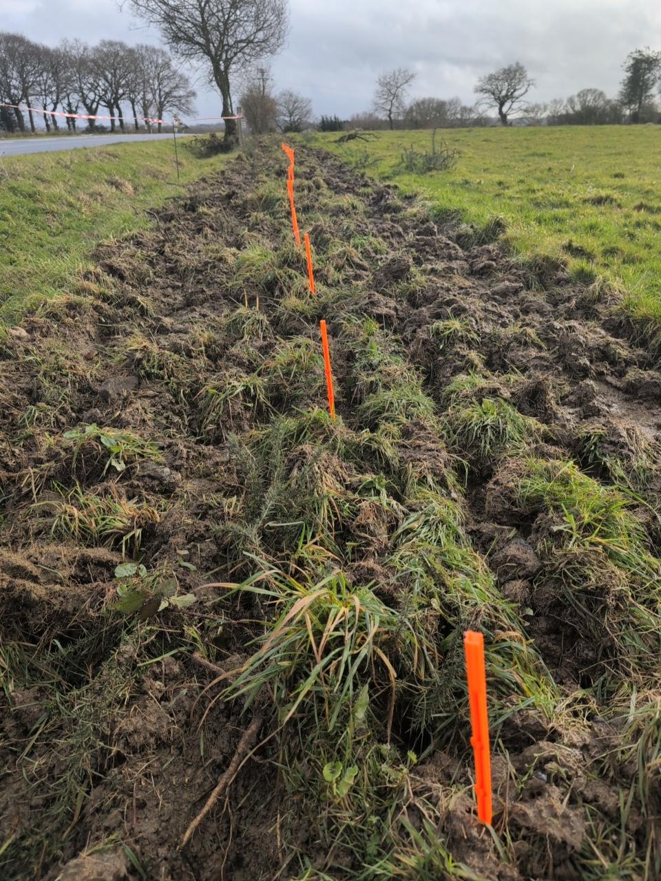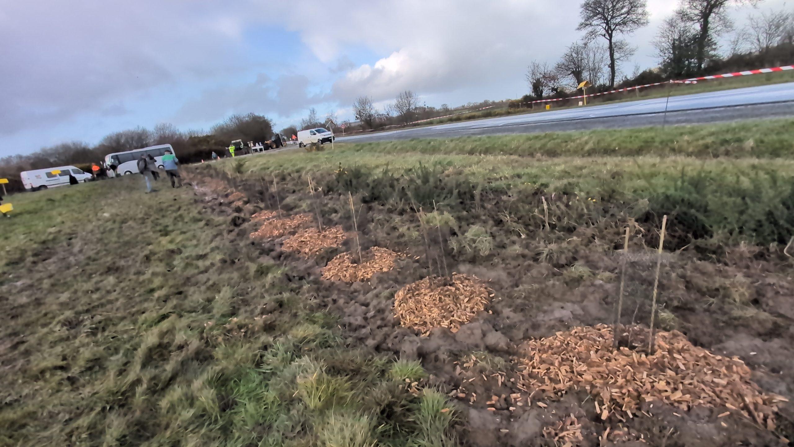 La haie a été implantée sur une parcelle agricole appartenant à la Ville d’Yffiniac et exploitée par M. Guernion, également présent pour accompagner le chantier. Chaque plant a été protégé par un paillage fourni par Saint-Brieuc Armor Agglomération, afin de favoriser sa bonne reprise et sa croissance.