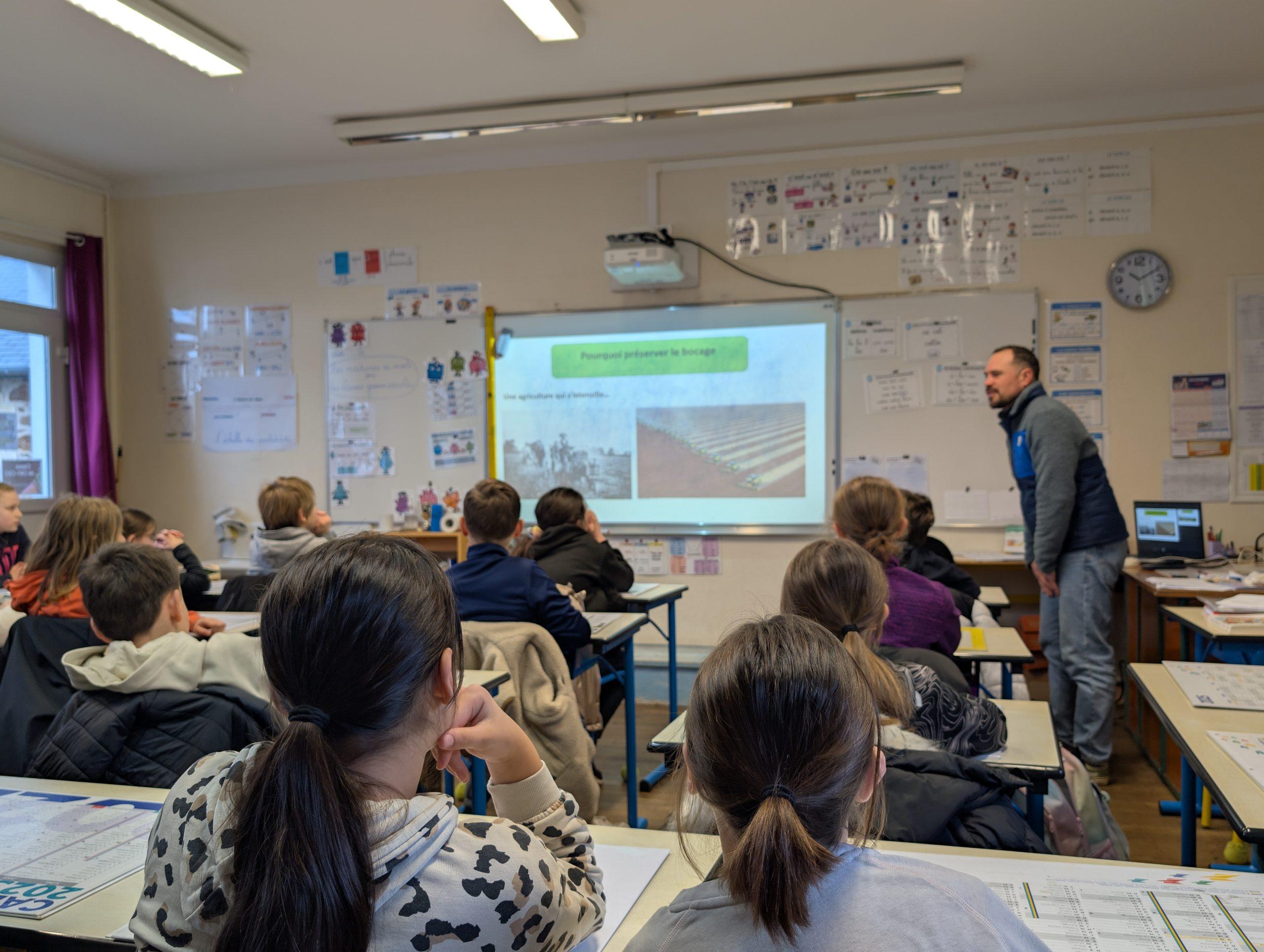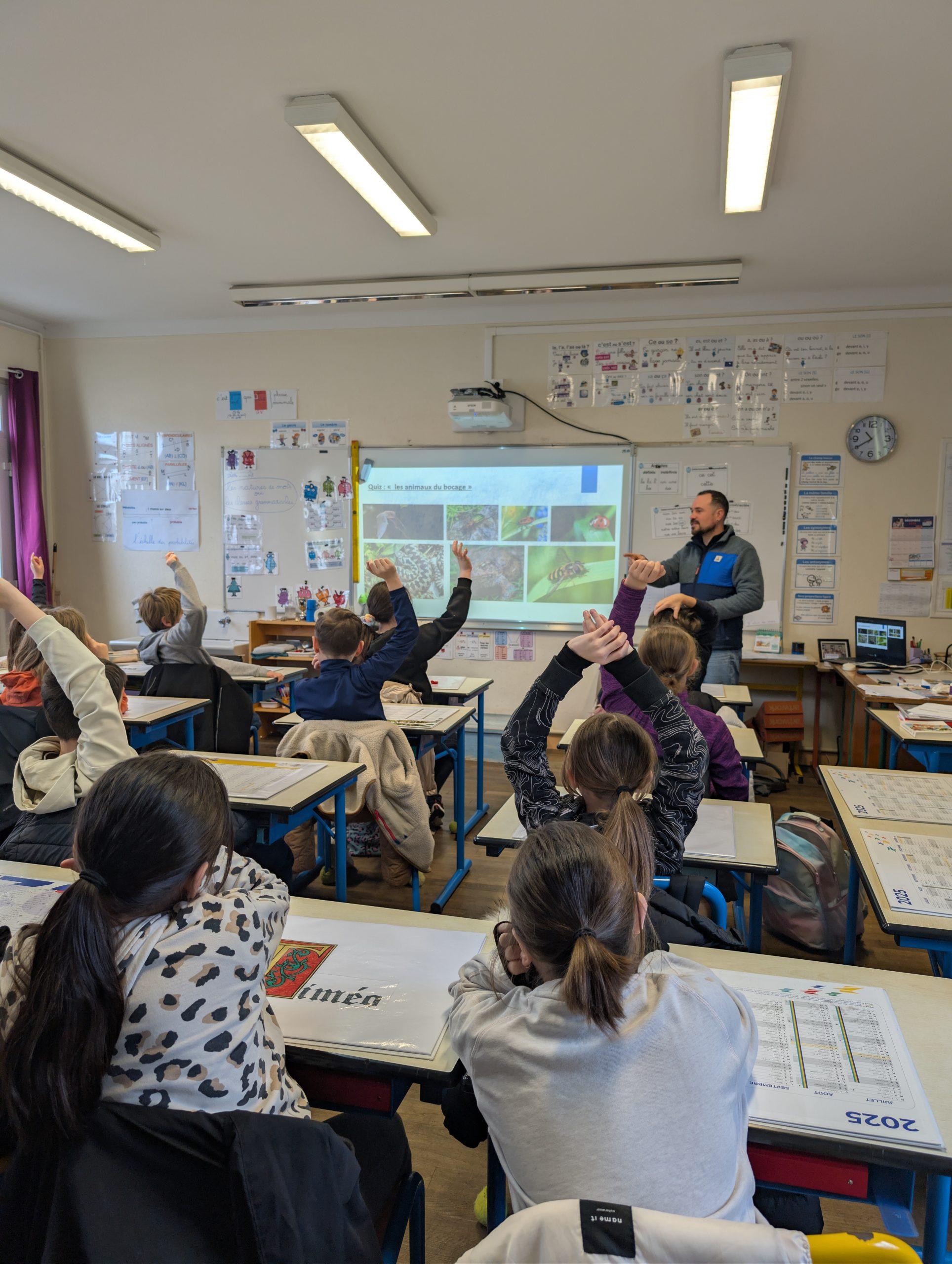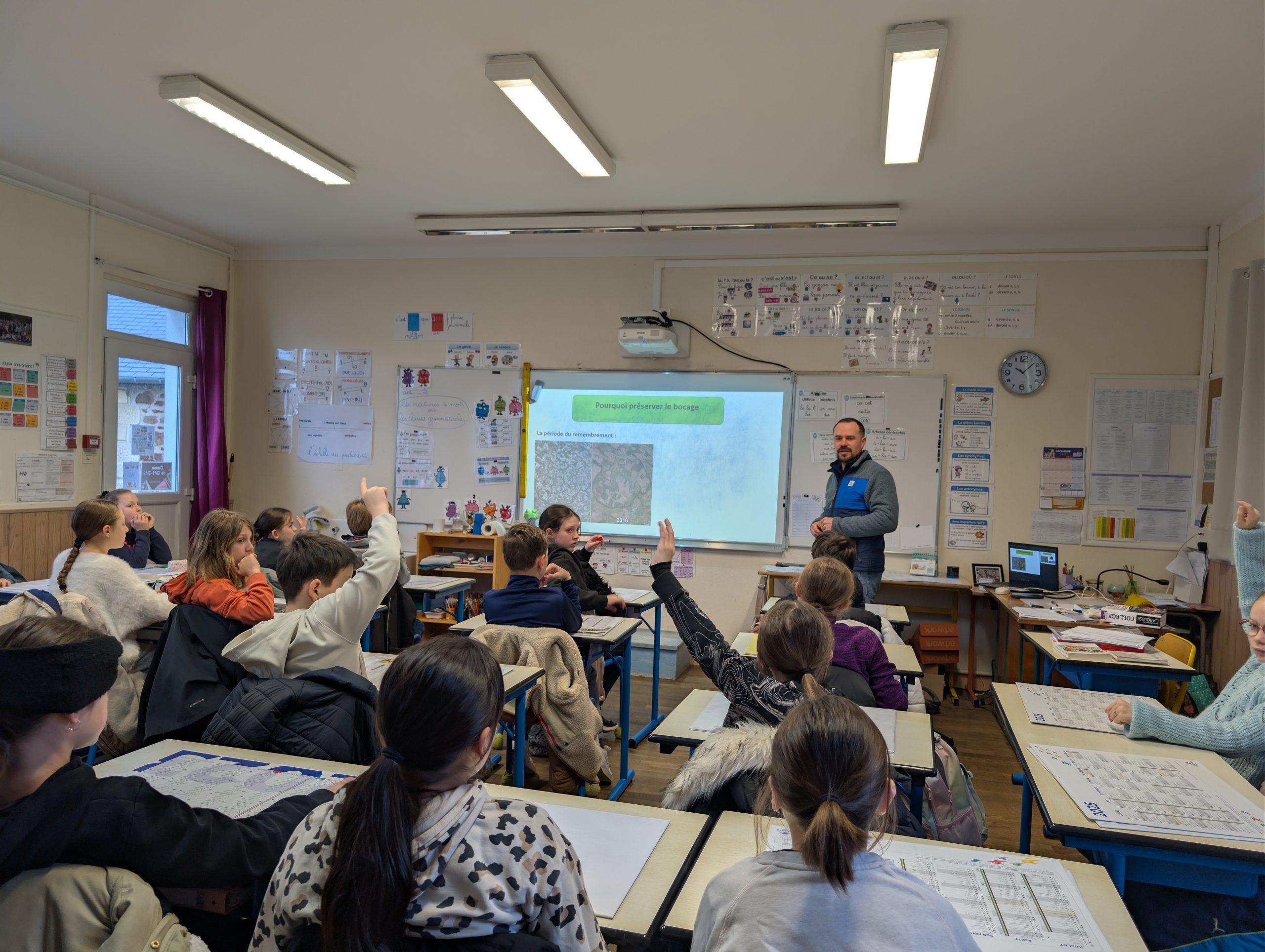 La journée a débuté en classe avec l’intervention de Ronan Pengam, de la Fédération des chasseurs des Côtes d’Armor. Les élèves de CM2 ont ainsi découvert ce qu’est une haie bocagère, ses caractéristiques et ses nombreux atouts : lutte contre l’érosion des sols, contribution à l’atténuation du réchauffement climatique, protection de la biodiversité (habitat naturel, corridors écologiques pour la faune) et amélioration du paysage.