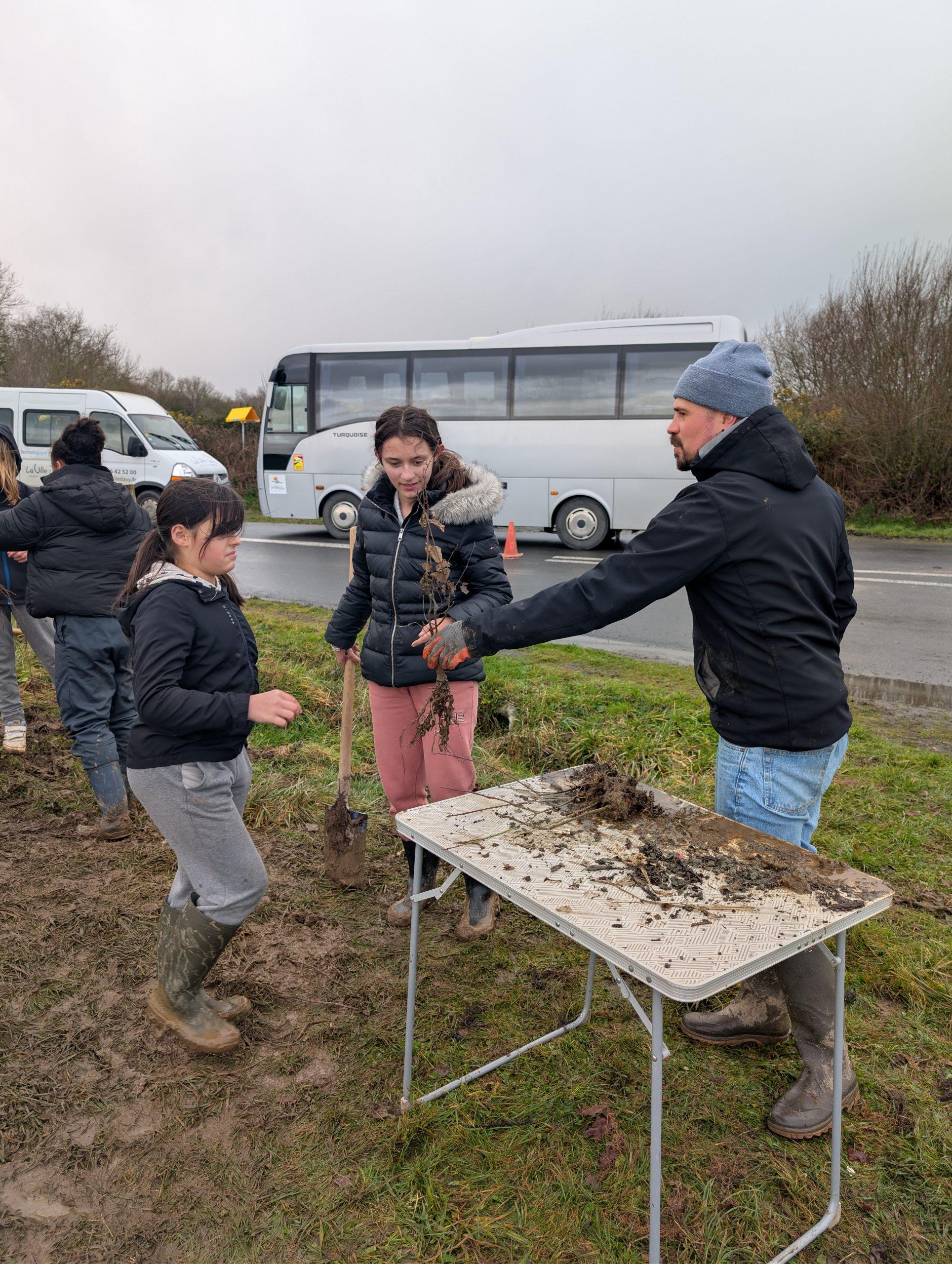 L’après-midi, les écoliers ont rejoint les lycéens de la Ville Davy, élèves de seconde générale option EATDD (Écologie, Agronomie, Territoire et Développement Durable), sur la parcelle concernée. Malgré une météo ponctuée d’averses, les jeunes ont participé activement à la plantation de 90 arbres et arbustes sur environ 100 mètres linéaires.
